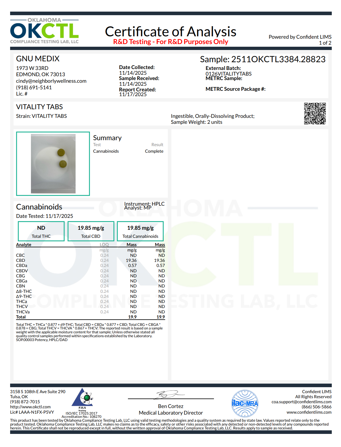 THC: Not Detected (Broad Spectrum) (OKCTL Certified)